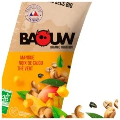 Barre Energétique Baouw Mélange Fruits Secs Bio Mangue – Noix De Cajou – Thé Vert