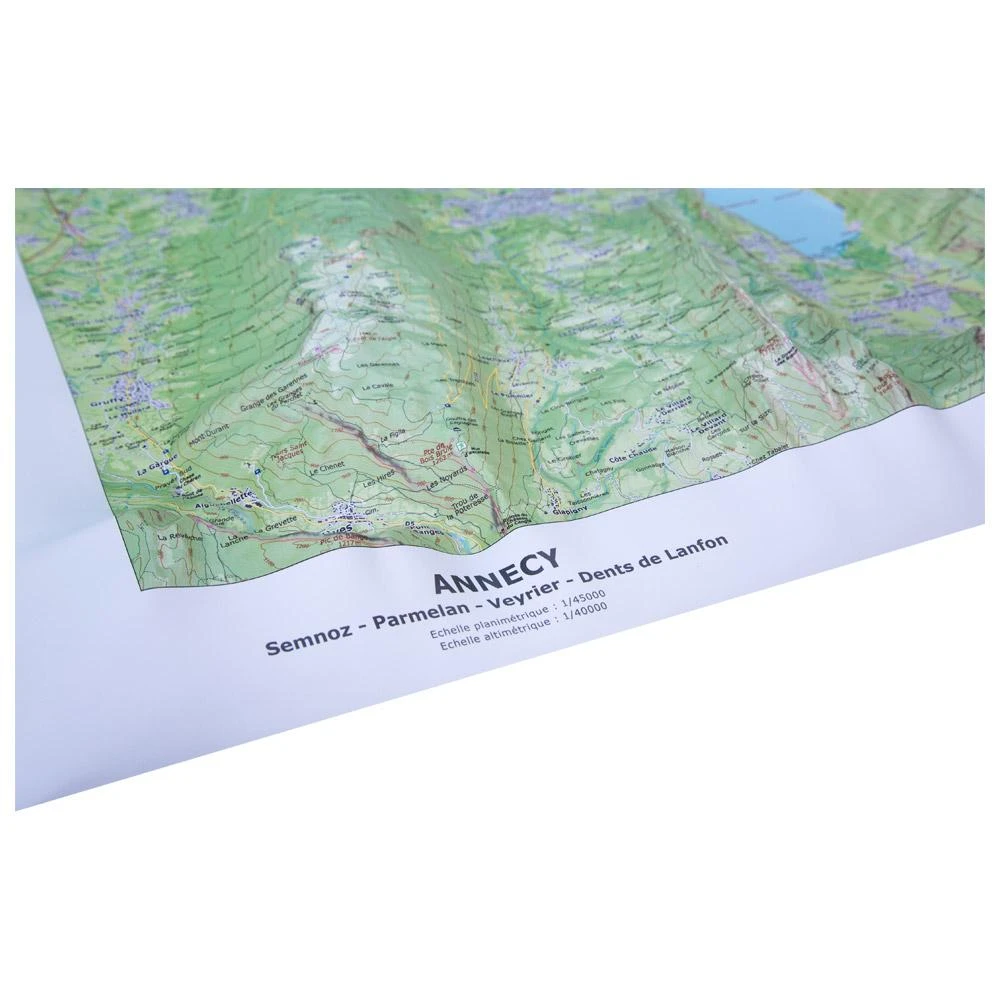 La carte topographique 3D de la société d’édition auvergnate Dénivelés propose de s’immerger dans les reliefs qui entourent la ville et le lac d’Annecy. Les amoureux de nature et les passionnés d’activités outdoor (ski de rando, trail running, parapente, varappe, escalade, alpinisme, vélo, VTT, randonnée, …) peuvent ainsi découvrir leurs futurs spots : au nord-est, les monts Veyrier et Baret, puis, en allant vers le sud, les Dents de Lanfon, le col de la Forclaz. A l’ouest, le Semnoz et le Taillefer. Idéale pour préparer vos prochaines sorties, cette carte en relief avec courbes de niveau permet d’appréhender les cols, les sommets, leur altitude, les crêtes, les combes et les vallées.