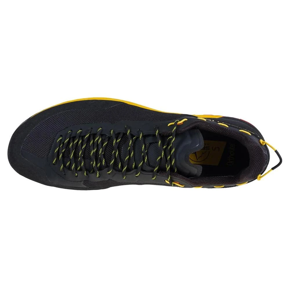 La Tx Guide est une chaussure d’approche technique pour les pratiquants à la recherche d’un produit performant et durable. Elle offre polyvalence, légèreté et protection dans les terrains accidentés et rocailleux. Sa conception utilise des éléments des modèles de running/approach et d’escalade. La forme Tech Fit épurée et enveloppante et le laçage asymétrique démarrant loin sur l’avant du pied assurent précision et ajustement pour un maintien parfait. Cette chaussure est très stable en pointe, la climbing zone offre une meilleure accroche. La tige est hautement résistante à l’abrasion, de plus elle est dotée de renforts en TPU. La languette à soufflet empêche les éléments extérieurs de rentrer dans la chaussure. La semelle intermédiaire double EVA assure amortissement et stabilité tandis que la semelle Vibram offre de l’adhérence dans toutes les conditions.
