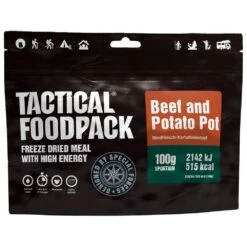 Le repas lyophilisé Bœuf et Pommes de terre 100g Tactical FoodPack est conçu pour vous donner une dose d’énergie et de vitalité lors de vos aventures en plein air. Avec ses ingrédients naturels, ce repas est le choix parfait pour vous ravitailler en pleine nature.