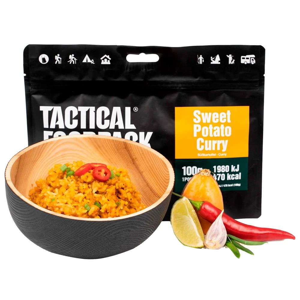 Dégustez le repas lyophilisé Curry de Patate Douce 100g de chez Tactical FoodPack, un mélange de douceur et d’épices qui réveille les papilles. Le lait de coco et le citron vert subliment le curry et sont servis avec du riz moelleux.