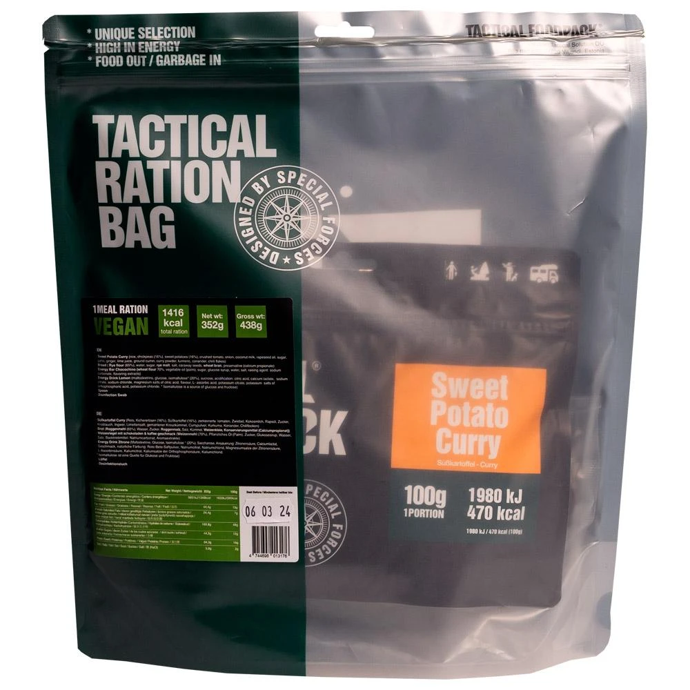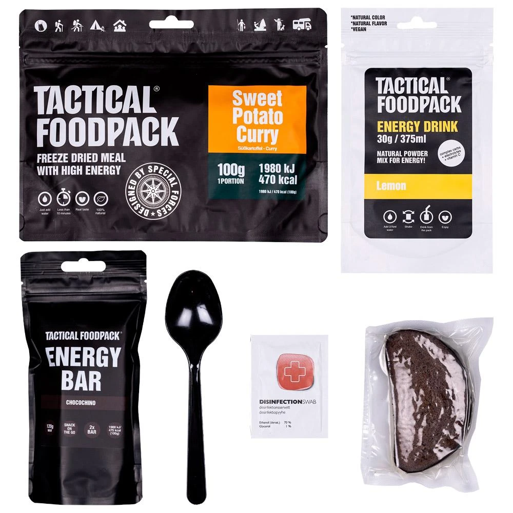 Ne vous laissez pas décourager par la faim lors de vos activités de plein air grâce aux rations de repas lyophilisé Tactical FoodPack. La Ration Vegan 1 Meal Tactical comprend un repas, un en-cas, une barre énergétique et une boisson énergétique pour un regain d’énergie rapide ainsi qu’une lingette désinfectante pour les mains pour une hygiène personnelle impeccable.