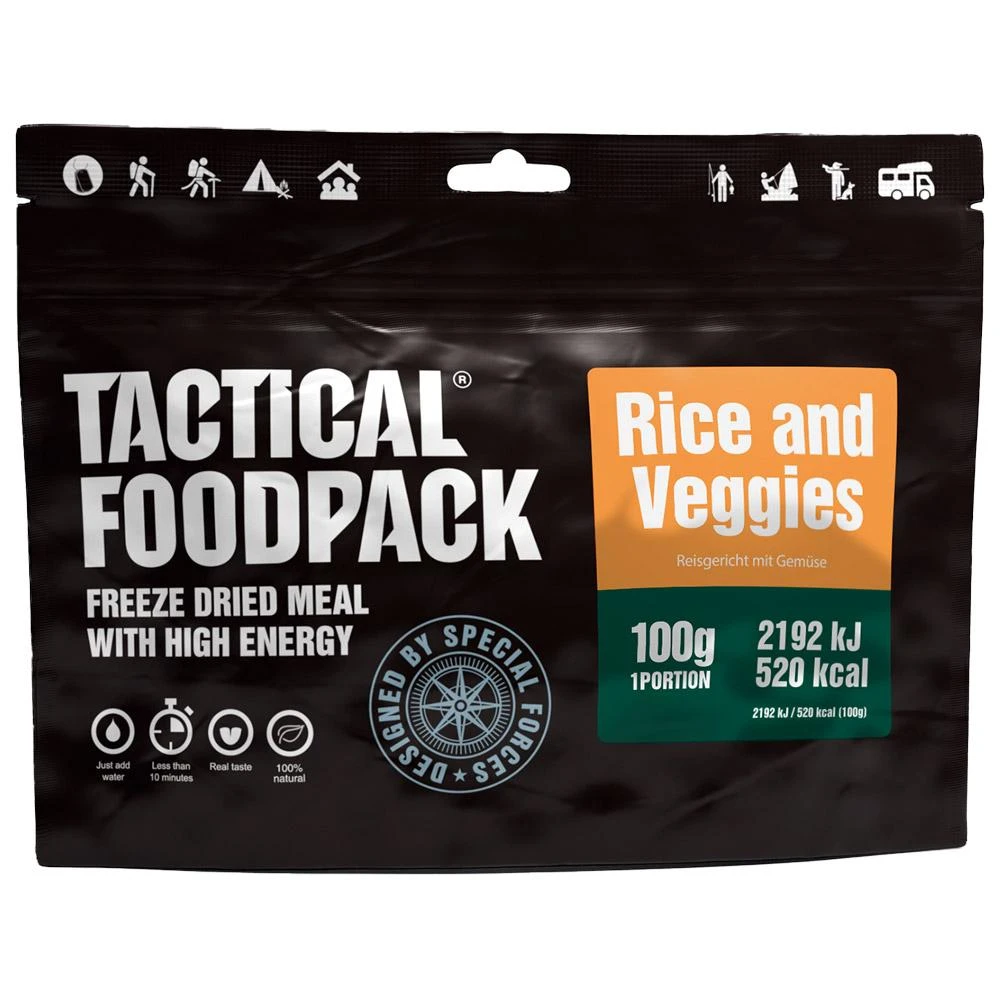 Le Riz et Légumes 100g de chez Tactical FoodPack est un repas lyophilisé compact, léger et à conservation longue durée. Pratique lorsque vous partez pour un trek de plusieurs jours comme en camping, il constitue un bon apport d’énergie pour repartir plein d’énergie.