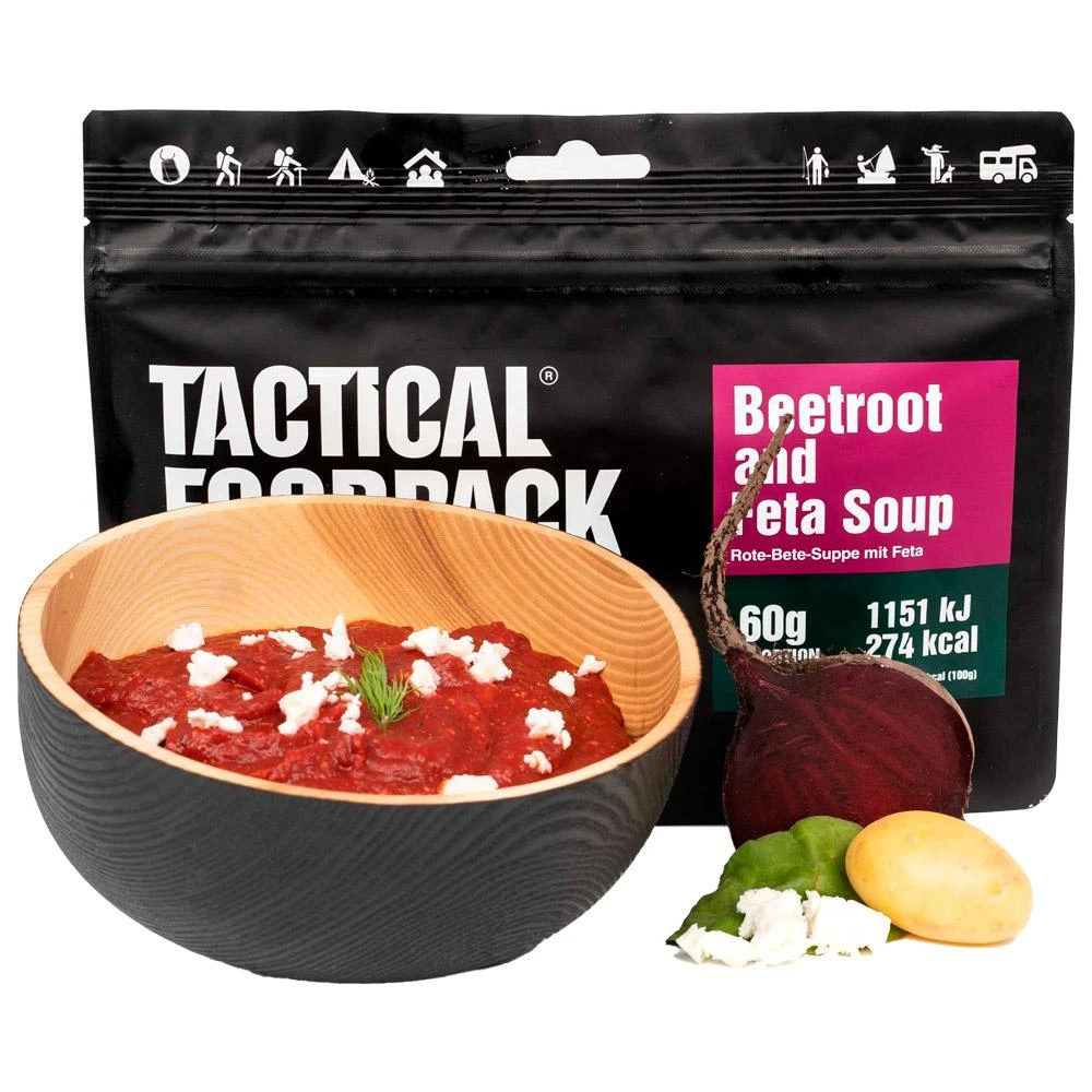 La Soupe Betteraves et Feta 60g Tactical FoodPack est un repas lyophilisé compact et facilement transportable qui permet de profiter d’une bonne soupe après sa grosse journée en montagne.