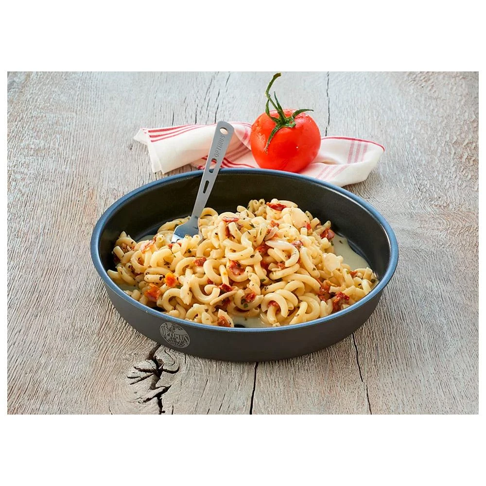 Les délicieux macaronis au pesto de saumon raviront les amateurs de poissons. Grâce au repas lyophilisé par la marque Trek’n Eat, vous pourrez déguster ce plat riche et équilibré même si vous êtes perdu(e) en pleine nature. Il vous suffit de faire bouillir de l’eau avec votre réchaud, de la verser dans l’emballage pouch, et 10 minutes après votre plat est prêt !