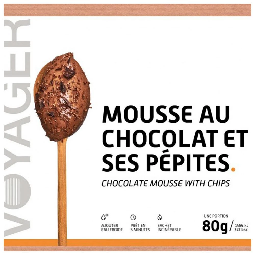 La Mousse Au Chocolat Et Ses Pépites de chez Voyager permet de regagner de l’énergie avant l’effort en se faisant plaisir. Après avoir rajouté 90 ml d’eau, remué et patienté quelques minutes, vous pourrez faire le plein de glucides et de protéines tout en savourant un onctueux dessert qui monte le moral au plus haut et ravit les papilles.