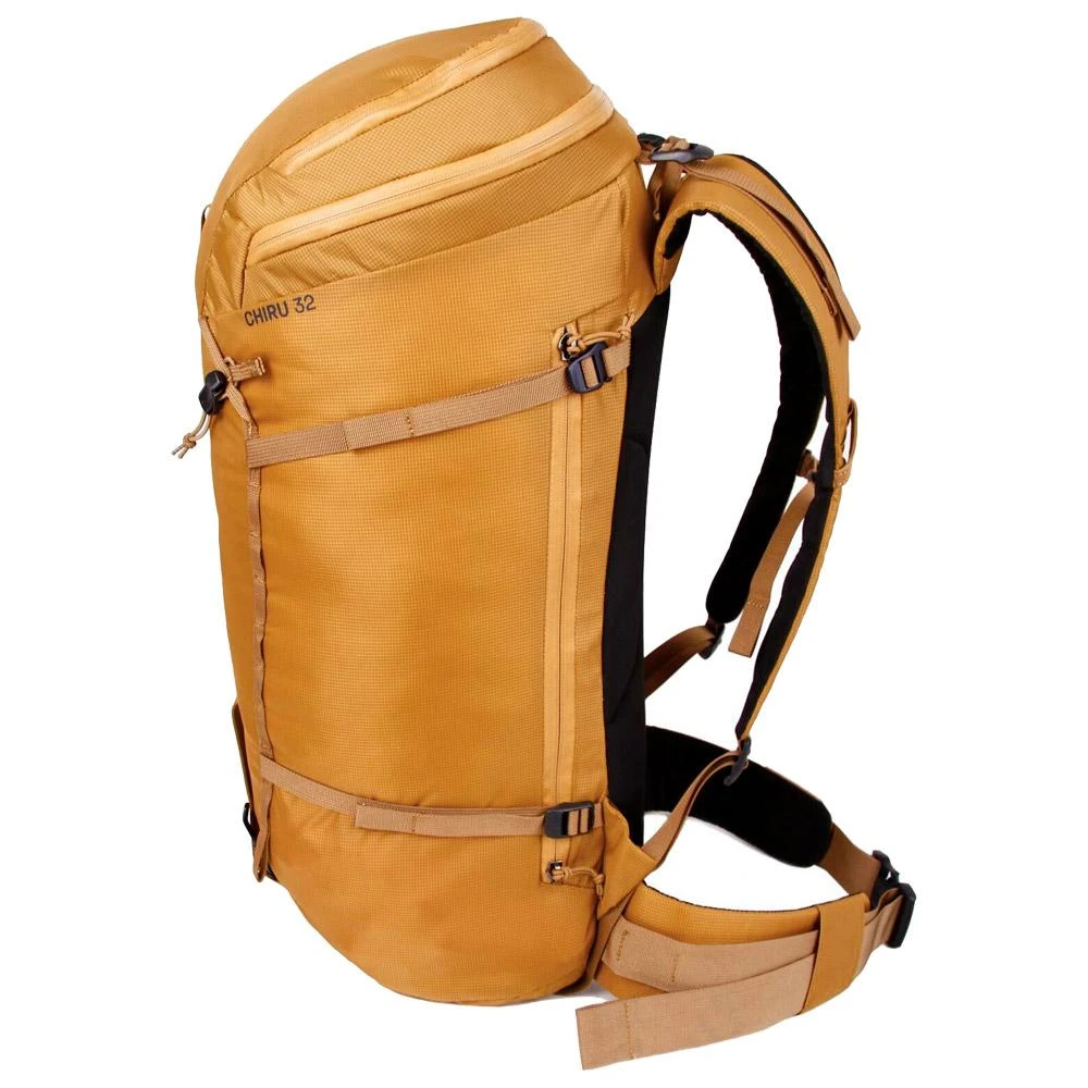 Léger et fonctionnel, le Chiru 32L de Blue Ice est un sac à dos idéal pour celles et ceux qui recherchent un modèle pratique pour leurs activités alpines et de randonnée. Grand frère du Chiru 25L, il partage presque toutes les mêmes caractéristiques. Les seules différences étant son plus grand volume, de 32 litres, et son zip sur toute la longueur qui permet d’accéder facilement et rapidement à votre matériel. Pour le reste, il est conçu avec un nylon 210D Ripstop sans PFC certifié Bluesign résistant et imperméable. Il offre une grande liberté de mouvement grâce à ses bretelles fines et ses pads de confort escamotables. Côté confort, il bénéficie d’un panneau dorsal robuste et d’un système de portage pour être toujours à l’aise même bien chargé. Le sac dispose d’une large ouverture zippée sur le haut, d’une sangle poitrine et d’une ceinture ventrale réglable, d’un porte-casque, d’un porte piolet avec poche de protection 3D, d’une sangle porte-corde ajustable et amovible, d’un compartiment interne pour objets de valeur et est compatible avec les systèmes d’hydratation.