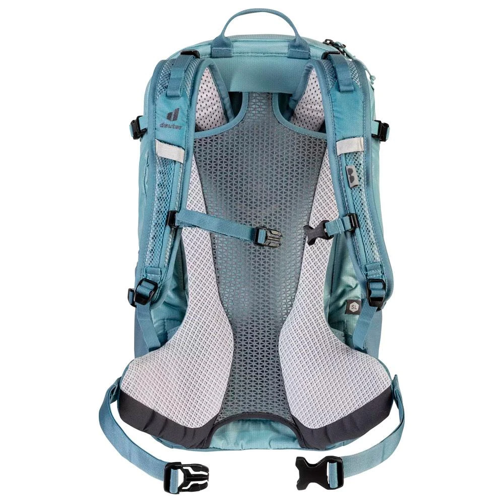 Fabriqué de façon éco-responsable avec 50% de matières premières recyclées certifiées Bluesign, le sac à dos femme Deuter Futura 21 SL vous accompagne en montagne en emportant avec vous juste l’essentiel. A la fois léger et résistant à l’abrasion et aux déchirures, il dispose d’un panneau dorsal Aircomfort en filet qui favorise autant le confort que la respirabilité. Adapté à la morphologie féminine, il bénéficie de bretelles Active Fit qui n’occasionnent aucune gène au niveau de la poitrine, ainsi que d’une ceinture abdominale et de stabilisateurs de hanche qui permettent que le sac repose sur le bassin et non sur les épaules.