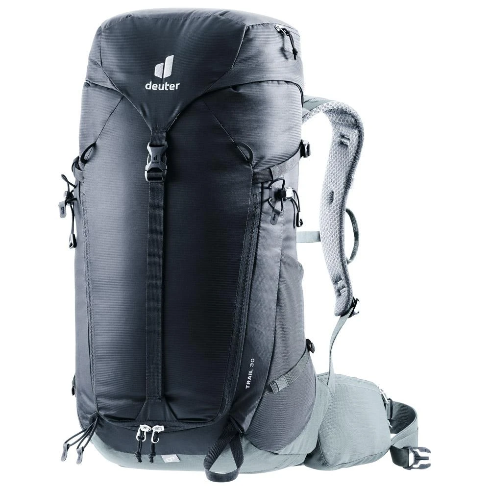 Le sac à dos Trail 30 de la marque Deuter est un modèle haut de gamme qui convient à un usage sportif pour la randonnée, la via ferrata, l’escalade… Il est conçu avec un panneau dorsal Airstripes qui permet que l’arrière du sac repose sur certaines parties du dos et laisse l’air circuler évitant d’avoir trop chaud et d’énormément transpirer. Le Trail 30 est équipé d’une ceinture ventrale qui une fois ajustée permet de répartir la charge sur les hanches et le bassin, afin de soulager les épaules.