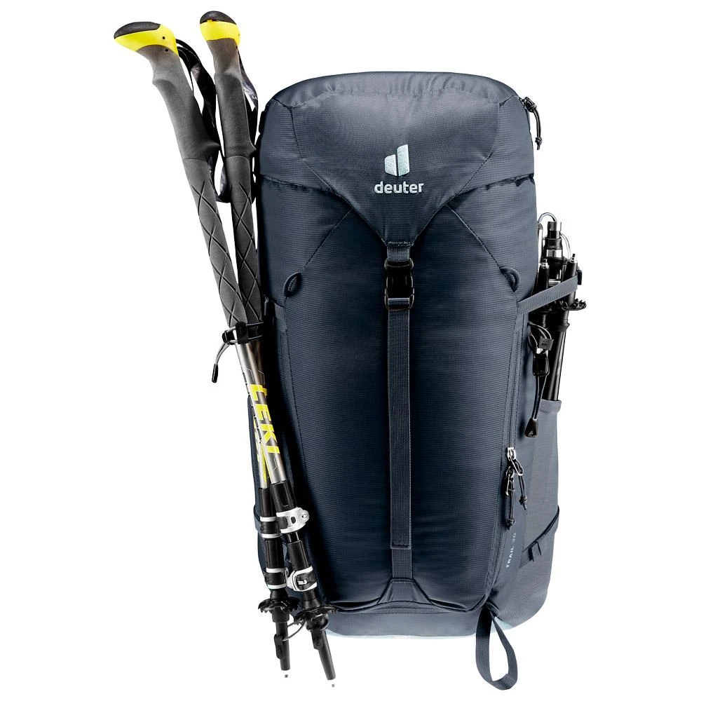 Le Deuter Trail 30 résulte d’une combinaison de matières polyester, réputées pour leur résistance à la déchirure et à l’abrasion. A l’extérieur, il est possible de fixer des bâtons de rando ou un piolet. Le compartiment à l’avant facilite l’accès au contenu, ce qu’apprécieront les grimpeurs pouvant ainsi attraper leur matériel en un rien de temps. Lorsque la pluie s’intensifie, une housse de pluie permet de recouvrir l’intégralité pour garder vos affaires à l’abri de l’humidité. L’intérieur se veut également facilement accessible depuis le haut du sac. Il permet d’incorporer une poche à eau pour avoir en permanence de quoi s’hydrater sans devoir s’arrêter.
