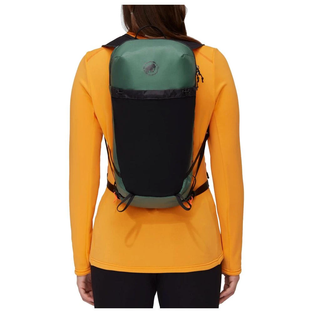 Le sac à dos Mammut Aenergy 12 est un modèle très léger avec un volume de 12 litres. Idéal pour les randonnées rapides, il est doté du système de portage Contact et de larges bretelles ergonomiques. Il est compatible avec une poche à eau et permet également de transporter des gourdes souples, afin de ne pas négliger votre hydratation.La poche extérieure en filet augmente la capacité de rangement et vous permet d’accéder facilement à votre équipement. Le traitement déperlant durable sans PFC protège vos affaires de l’humidité en cas d’averse. Ce modèle bénéficie du label Fair Wear et est presque intégralement fabriqué en matières recyclées.